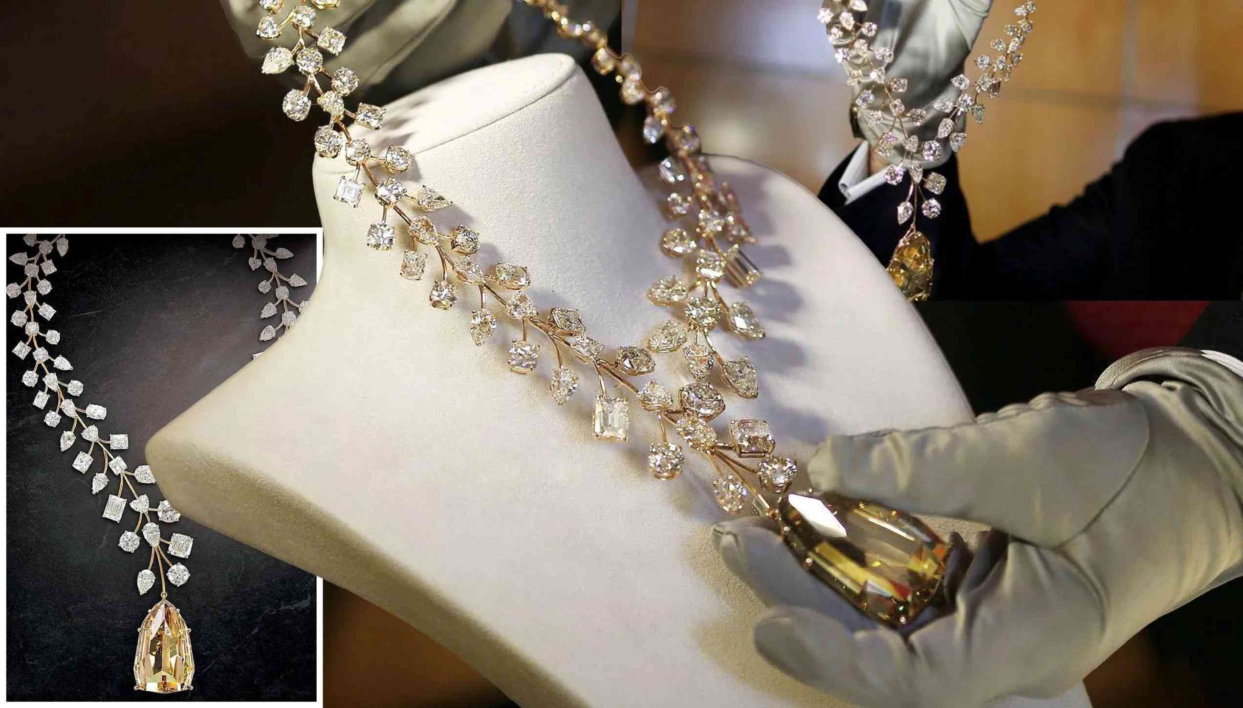 目前,L'无与伦比的钻石项链是地球上最大的钻石项链,使其与众不同,价值数百万。黎巴嫩珠宝商懋婉创造了这件物品,它拥有世界上最大的无瑕钻石。它是一颗黄色阶梯式切割钻石,附在由玫瑰金和 91 颗白钻制成的链条上。