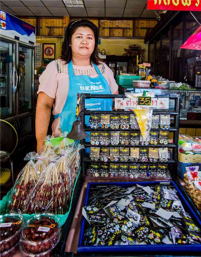 在安帕瓦水上市场买到的椰子壳耳饰PALAKLE等
