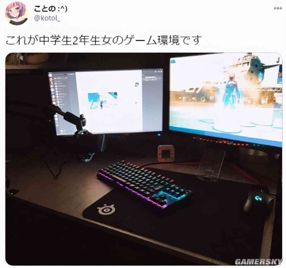 这位昵称「ことの」的日本网友是一位电脑游戏迷,最近她在推特分享了自己的游戏环境照片,以及从屏幕、键盘、鼠标到电脑椅的设备清单……