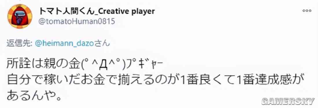 「还不是父母的钱,等她自己赚钱买设备才会知道那最有成就感。」