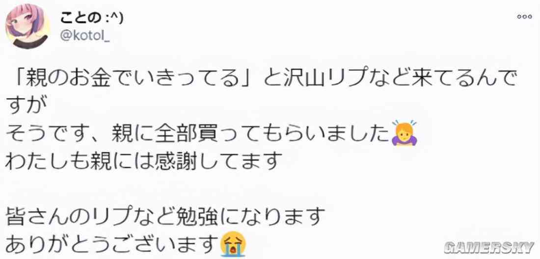 「我收到许多人说我『拿父母的钱炫耀』的回应。没错,这些的确都是父母买给我的,所以我很感谢我的父母。大家的回应让我受益良多,谢谢。」