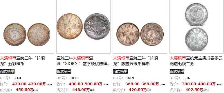 宣统三年大清银币,是清末币制改革的产物,版别多式,设计新颖,制作精良,历为钱币爱好者的珍藏品。宣统三年大清银币有不同版式,其中长须龙、短须龙、大尾龙比较稀少。现随文介绍于后,以供同好鉴赏。