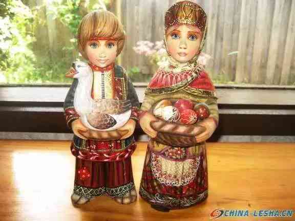 当然我已经决定买了,但4个都很精致,实在是挑花眼。女摊主又说你要不买一对儿吧,一男一女多好。 我一开始想5000卢布,真是疯了!!但后来觉得的确难以取舍,买一个不买另一个以后晚上会后悔得睡不着觉的。所以就挑了下面这对儿。事实证明当时的决 定是正确的,这对娃娃至今也是我的大爱。