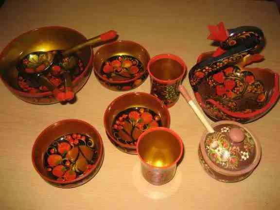 还有俄罗斯的传统餐具也很有特色。照片里的只是很小很普通的。还有更多更花哨的,比如大天鹅之类,可以摆在茶几上装糖。