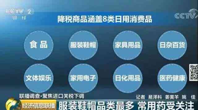 此次降税商品涵盖食品、服装鞋帽、家具用品、日杂百货、文体娱乐、家用电子、日化用品、医药健康等8类日用消费品。