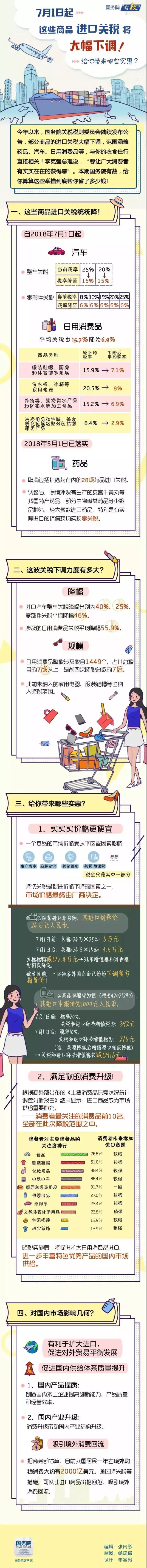 导读:7月1日起,我国降低1449个税目的日用消费品进口关税,而这一数字已经占到所有进口消费品总税目的7成之多,平均降幅更是达到了55.9%。