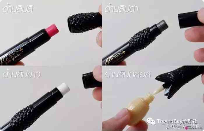 一支唇膏有四种用法,可以分段拆开,黑白色用来加深减淡唇色,顶部的唇蜜还能打造bling bling的妆效。