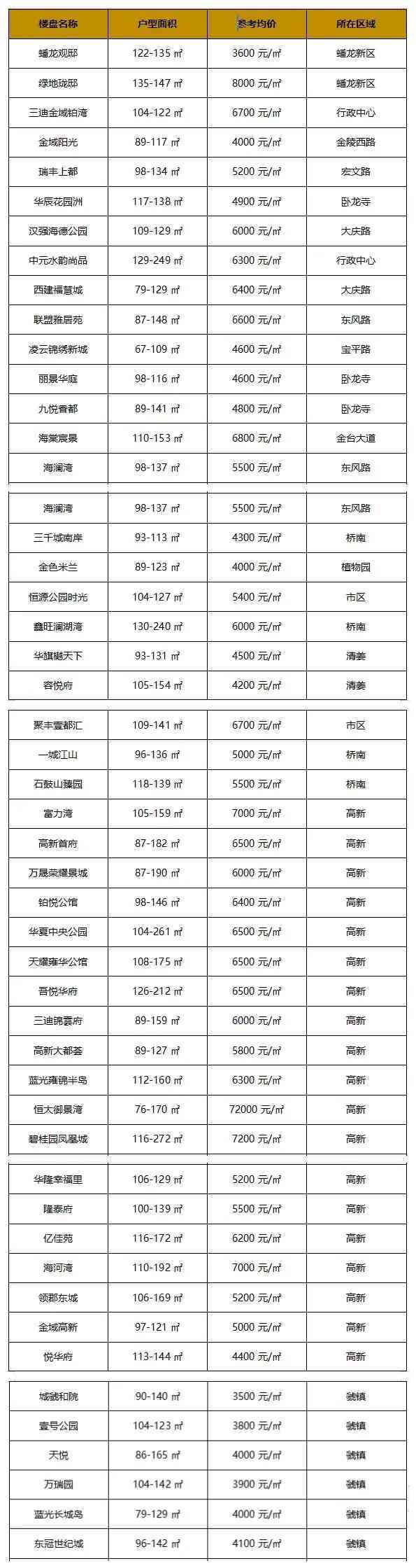 据不完全统计,目前新房市场上,单价在4500元/㎡以下的楼盘仅有12个,主要分为两部分来看: