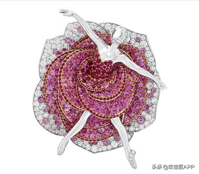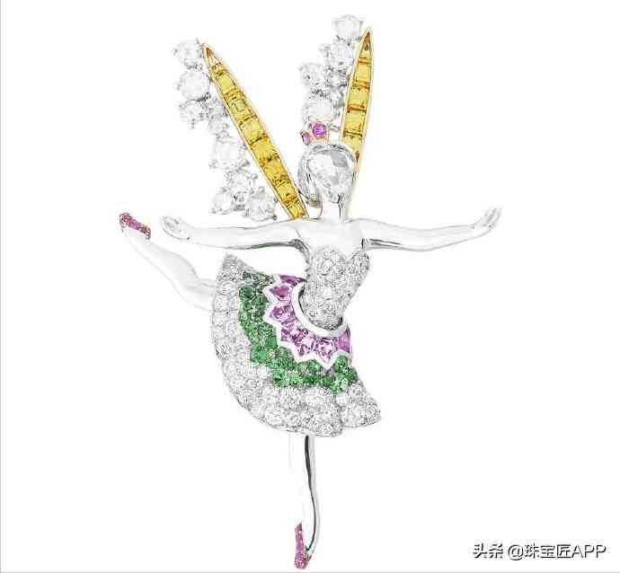 在Van Cleef & Arpels芭蕾舞仙女胸针里,摇曳的裙摆定格了芭蕾舞伶踮起脚尖的优雅身姿,让这份美永存。