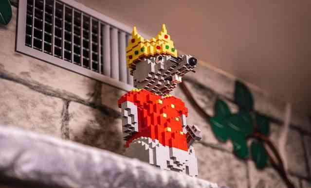 走进了看,门口这头忍者劳埃德的小绿龙竟然是一小块一小块的乐高积木拼成的,这也太让人惊讶了。