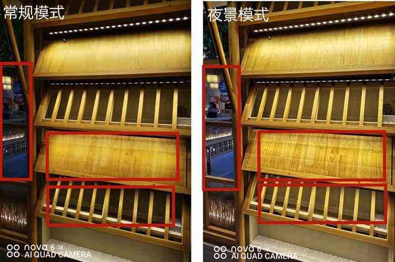 夜间一直都是华为手机的主场。从以上对比当中可以看到在光线亮度并不是极端暗的城市夜景当中,华为nova 6 SE不追求激进的亮度提升,而是尽力保留夜间景致的特色观感。城市夜景下由于光源复杂而出现的白平衡失准,这里华为nova 6 SE可以通过手持超级夜景下的AI图像合成功能得到最准确的色彩还原。色彩更艳丽,场景更生动。