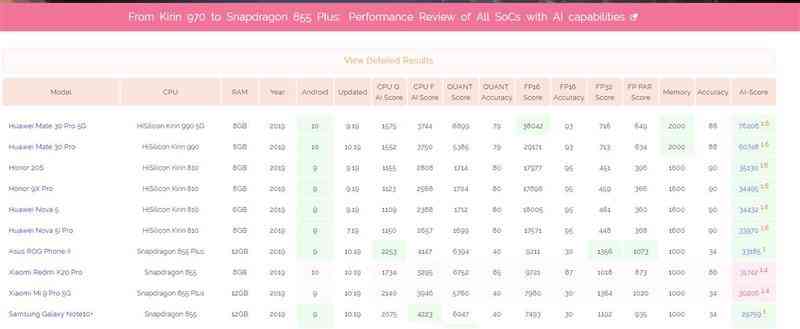 根据权威的AI Benchmark测试结果,麒麟810的分数仅次于麒麟990系列,值得一提的是华为和荣耀手机牢牢把持冠亚军,前十名当中的前六名都被搭载麒麟平台的荣耀和华为品牌机型牢牢占据,也是蔚为壮观。