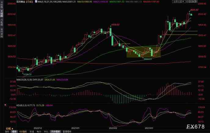 周四(4月6日)亚洲时段,现货黄金小幅走弱,目前交投于2011.65美元/盎司附近,美联储官员重申将进一步加息,非农数据前部分美元空头获利了结,美元指数反弹,令金价承压,上一交易日K线录得十字星。不过,3月美国民间就业岗位增长低于预期,美国服务业增长放缓,也加剧了对美联储快速加息带来经济损失的担忧,10年期美债收益率连续六个交易日收跌,调查显示一年后美元指数将进一步下跌。