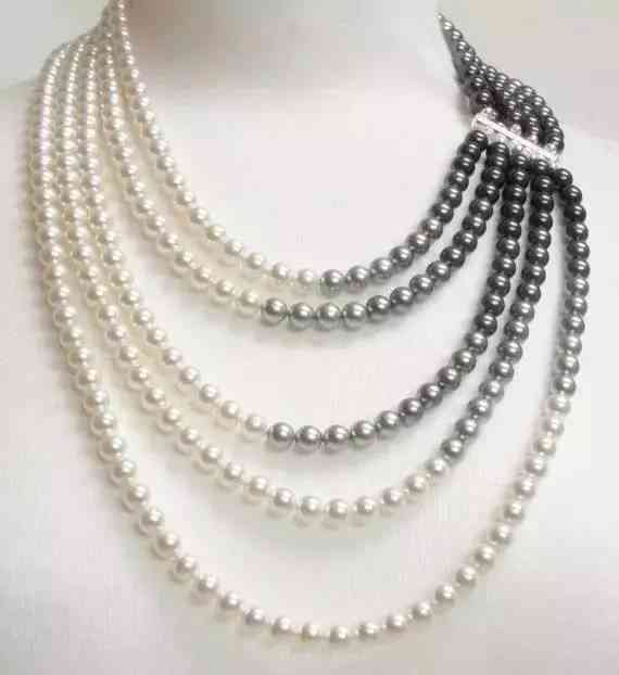 就是这样简单的一串珍珠,却可以百搭各种场合。尤其是需要身着礼服参加宴会的时候,纯白的珍珠衬在黑色礼服之上,是最吸睛的点缀。而灰黑色的珍珠搭配浅色服装也是别有风格。