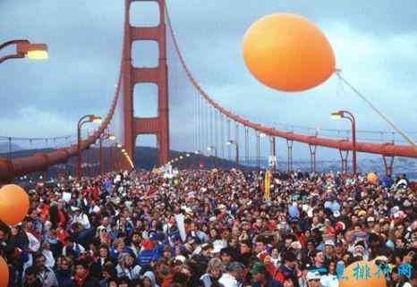 金门大桥于一九八七年五月成立五十周年,三十万人在沥青路上走过。由于桥梁在风中摇摆,甲板下降了超过2米(7英尺),目击者经历晕车。虽然当时没有人做出很大的改变,但是节省了大规模恐慌的局面,桥本身通常是弯曲的,似乎从一边完全变平。工程师表示没有真正的危险。金门大桥的每一英尺可以舒适地承受2600公斤(5,700磅)的重量,而游行者在桥的每一英尺仅施加约2,450公斤(5,400磅)的重量。桥梁实际上在施工期间比当时更加濒危(但并没有被彻底摧毁)。基础施工期间脚手架及危机潮汐问题造成911人丧生。然后在1951年,当风速达到每小时113公里(70英里)时,整个道路关闭了几个小时,导致桥梁颤动。来自同一位设计师的姐妹大桥,即塔科马狭窄的沙丘,在这起事件发生前10年,每小时风靡65公里(40英里)的电影。结构损坏发生在金门上,而风弯曲桥梁,中心附近的光线接触支撑电缆。根据前金门总工程师丹尼尔·莫恩(Daniel Mohn)的说法,这座桥几乎被毁了。交通量的增加可能导致了官员没有迅速采取行动的灾难。