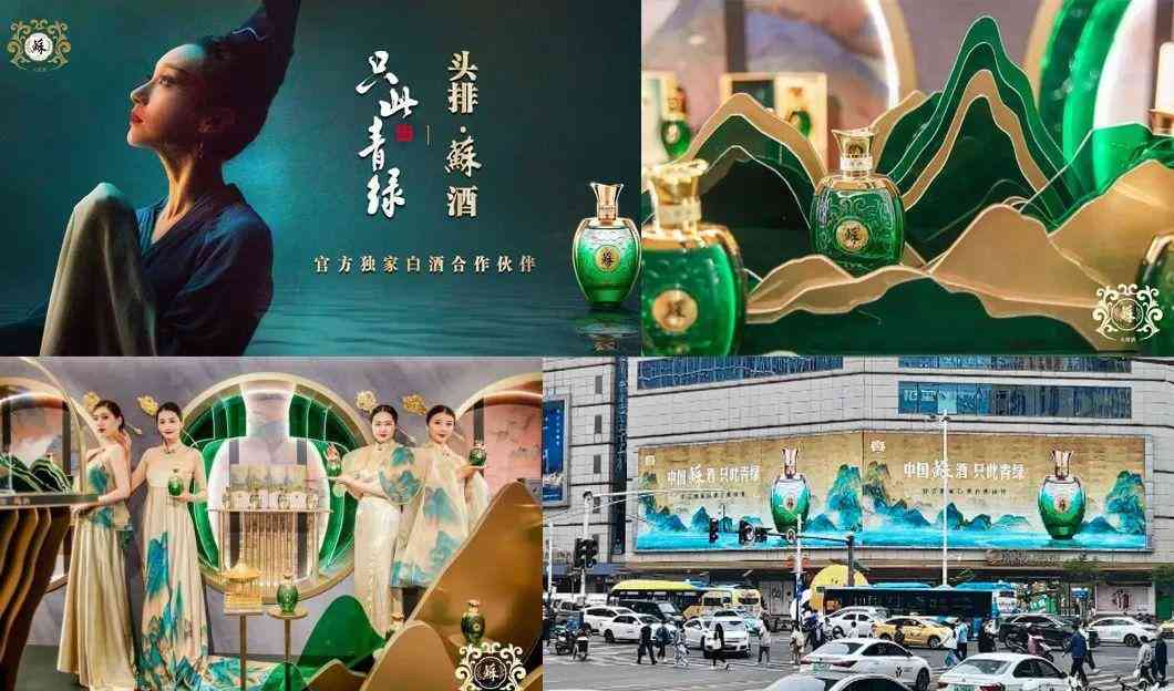 甚为遗憾的是头排苏酒绑定了「只此青绿」,没有深度的挖掘为一种「绿色&中国式优雅浪漫」的新生活观念,仅仅以视觉和活动视觉出街。