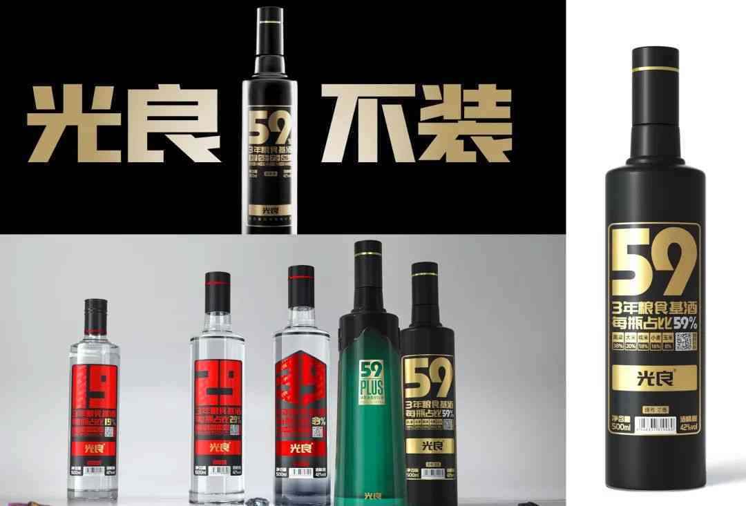 光良的理念是“去掉包装喝好酒,好产品用数据说话”。品牌的数据瓶系列在瓶身标注了19、39、59等不同的数字,比如“光良59”,就代表着其三年粮食基酒的含量比例达到59%。