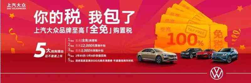 1.上汽大众全系加码 购车至高【全免】购置税;