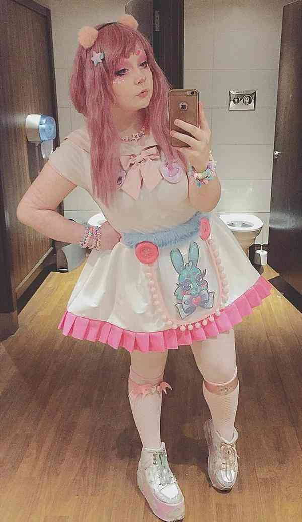 克丽丝塔每天早上都要花2个小时装扮。她粉红色的大衣柜里塞满了各种风格的服装,从维多利亚风格的丝绒连衣裙到日本动漫造型的服装、厚底鞋和闪亮亮的大皇冠,款式应有尽有,透露出满满的少女感。她先用厚厚的粉底营造出瓷感,再用眼影、白色眼线笔、三副假睫毛以及美瞳放大双眼。穿上服装后的她还会用小精灵耳饰等小配件增加整体造型的可爱感。她把自己描述为“来自太空的可爱魔兽娃娃”,并称从化妆过程中找回了自信。