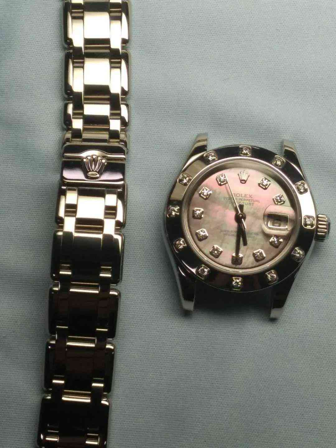 因为这款劳力士是白金钻表,所以费用会高一些,普通款劳力士相较较低,同时具体的抛光收费需要视手表自身情况而定,这枚爱宝时因为表带为普通钢带,所以收费远比劳力士的低,仅1180元。