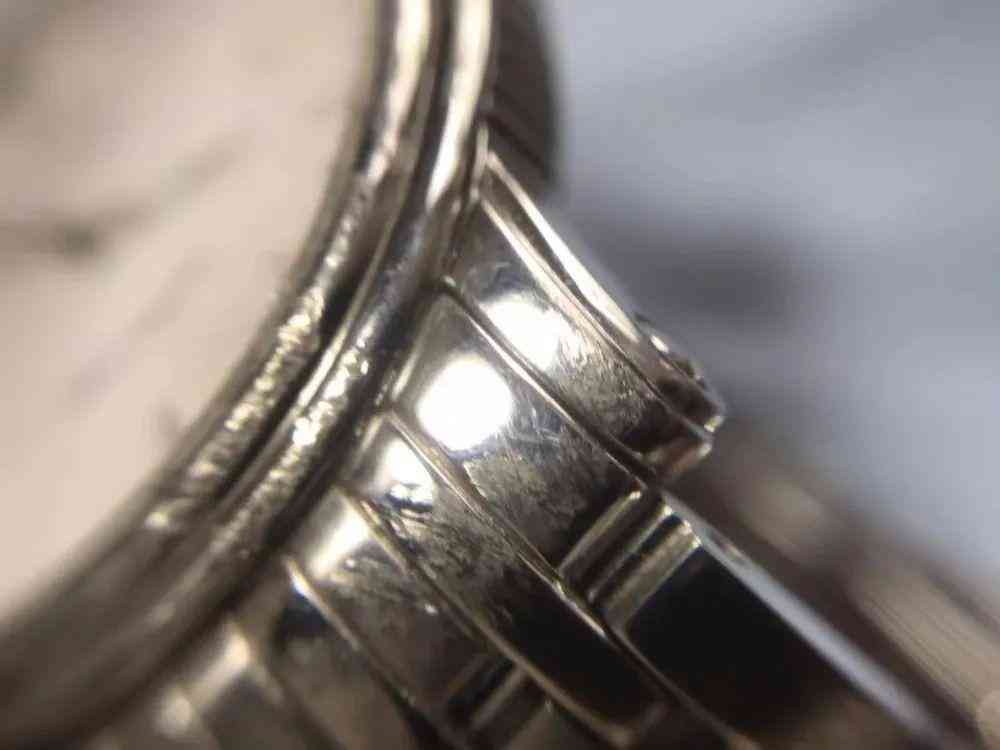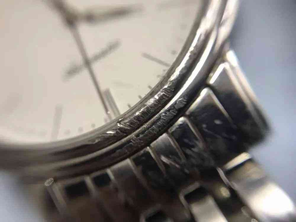 这种情况多出现在全钢表身或其它钛、青铜材质的表壳身上,出现刮痕后,维修保养的方式多选择抛光,抛光不仅能让刮痕消失,还能让戴久了失去光泽的表身变得闪耀如初。