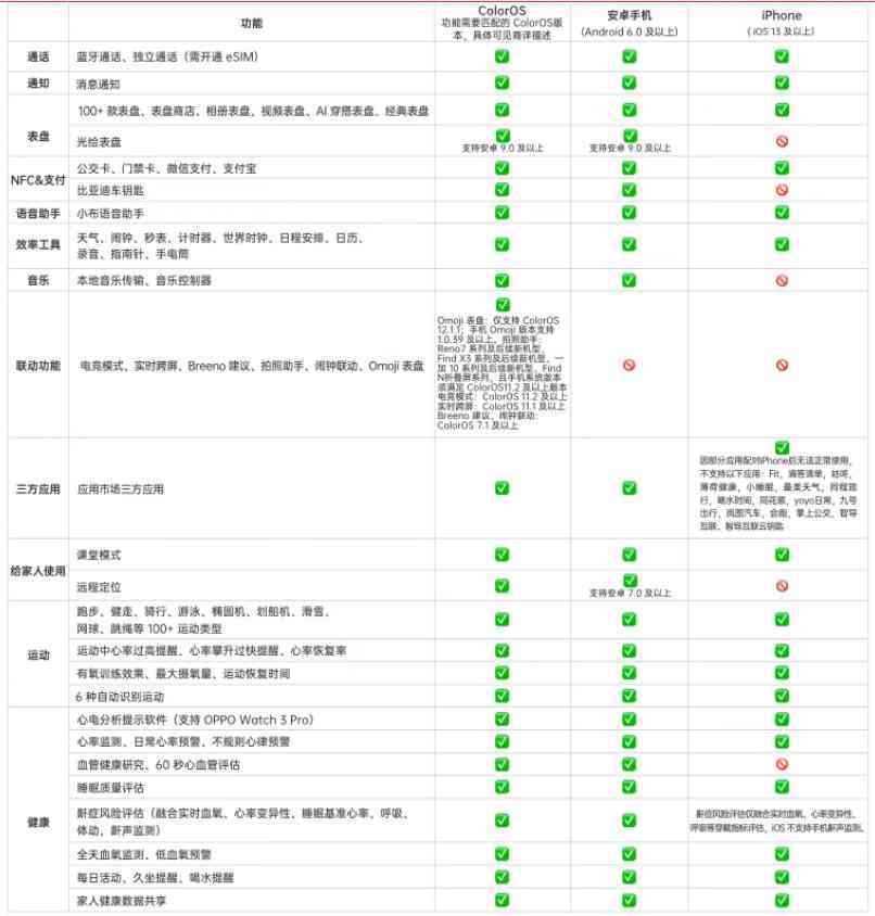 相比而言,OPPO Watch 3 Pro除了少部分特色功能会特别面向ColorOS生态,但对于其它Android手机,以及iPhone手机也有很好的兼容性。