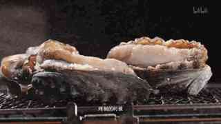 烤制过程中不断喷洒大牌清酒以激发鲜味的烤鲍鱼…