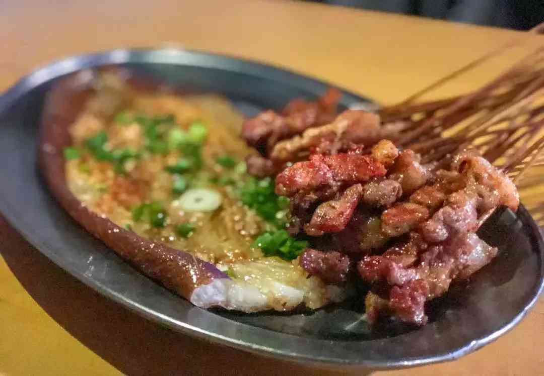 也是炭火烧烤,再配上秘制的酱汁,很香。而且真的东北粗犷的风格,串基本都大,很过瘾。当然还有东北才能吃到的“东北味”,烤板筋、烤筋皮、烤猪皮等等。
