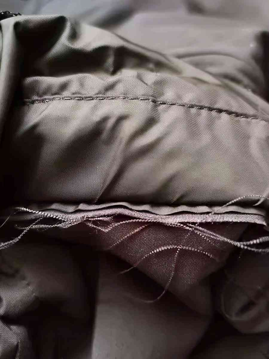 除此之外,大衣多处做工也极不注重细节:记者从贾女士提供的照片上看到,衣服多处挂着许多长长短短的线头、衣服口袋内布料边缘没有包边,有脱线现象。贾女士还说,衣物的面料也有阵阵刺鼻的味道,存在明显的质量问题。