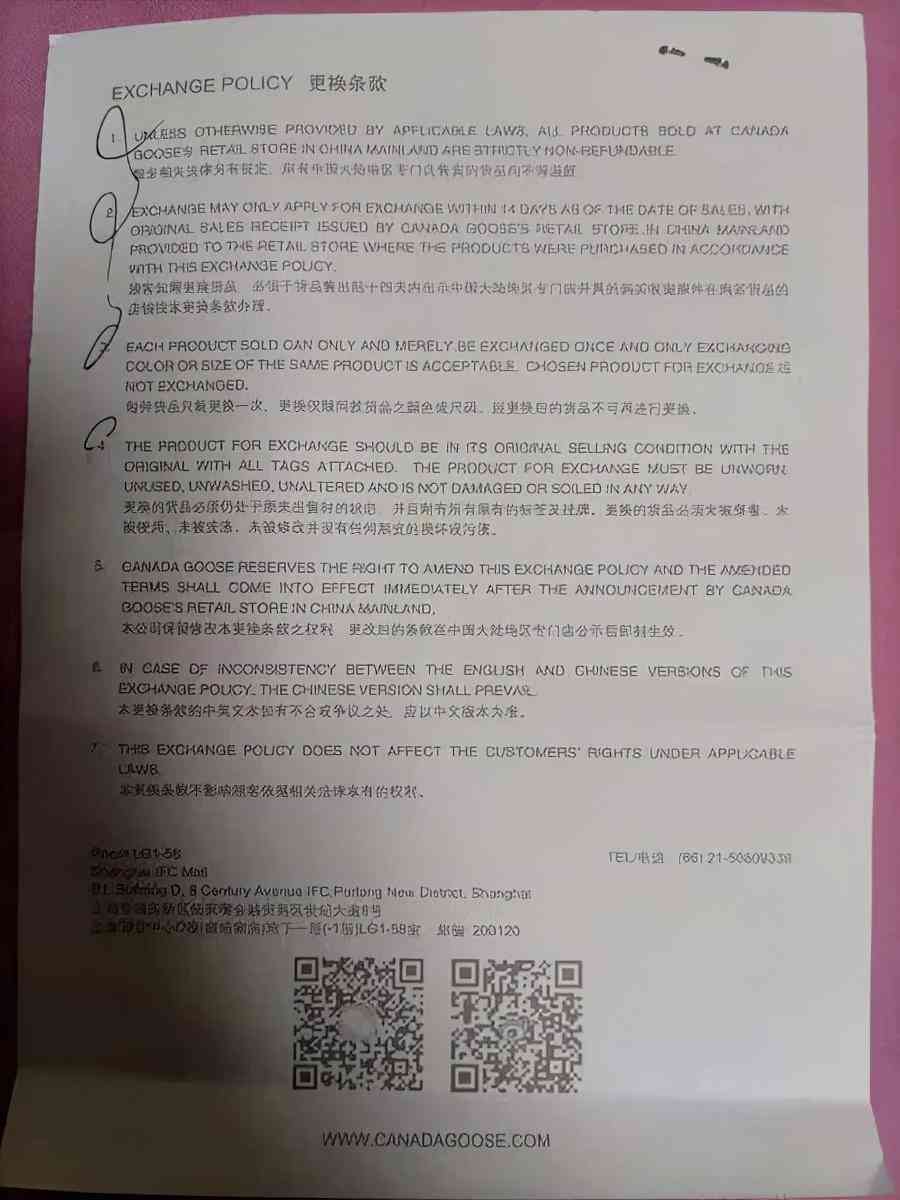 记者致电加拿大鹅客服热线,一名工作人员记录之后称,会与门店协调此事,给消费者和记者一个答复。记者询问:“专柜门店售出的产品,为何不能退换货?”对方回答,工作人员对于其他问题,一概没有回答的权限。