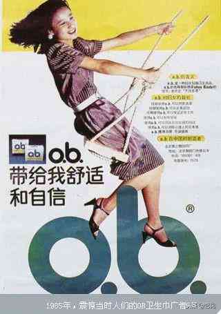 在中国开了卫生用品广告先例的强生o.b.棉条,在1985年的广告中便刻画了一个正在潇洒荡秋千的时髦女孩——大耳环、修身连衣裙与高跟凉鞋,笑得一脸灿烂,旁边则写着“o.b.棉条带给我舒适和自信”。