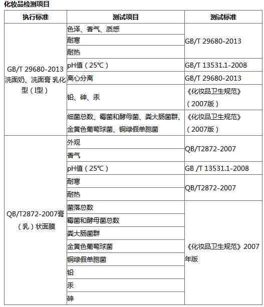 化妆品检测标准: