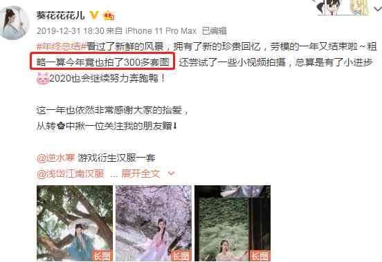 今天就要说一位宝藏coser,虽然她没有李子柒她们出名,但是敬业程度却能让人惊掉下巴——她粉丝近百万、官方认证"知名国学博主",痴迷古风游戏不能自拔,一年出了300多套COS,特别是她最喜欢的逆水寒几乎所有时装都出了作品,堪称2019年COS圈最佳劳模。