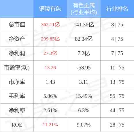 根据近五年财报数据,证券之星估值分析工具显示,铜陵有色(000630)行业内竞争力的护城河优秀,盈利能力一般,营收成长性较差。财务相对健康,须关注的财务指标包括:有息资产负债率。该股好公司指标3.5星,好价格指标4星,综合指标3.5星。(指标仅供参考,指标范围:0 ~ 5星,最高5星)