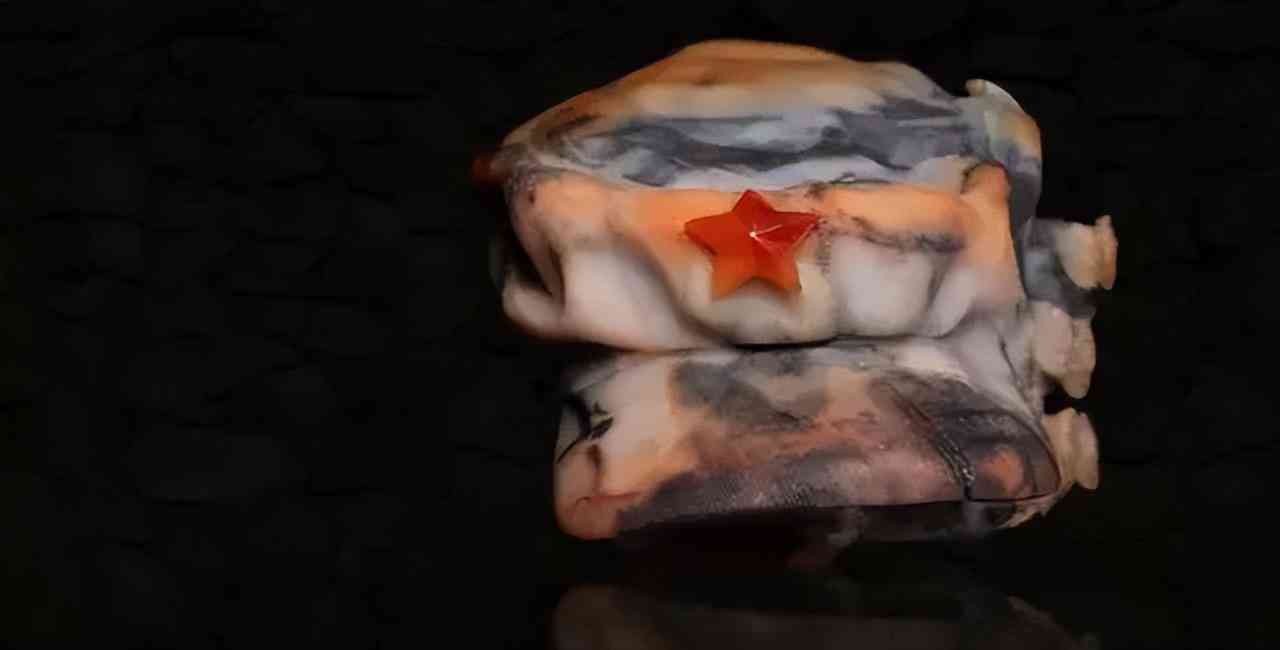 他特别喜欢选一些玉雕师累觉不爱的废料进行创作,根据料子本身的特质,比如颜色啊来发挥想象力。例如红色系列中的红宝书、军帽和草鞋。