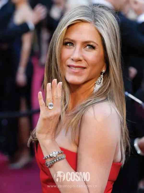 Jennifer Aniston的婚戒也是独钻款,重达8克拉,价值100万美元,也足以让所有妹子惊艳了。