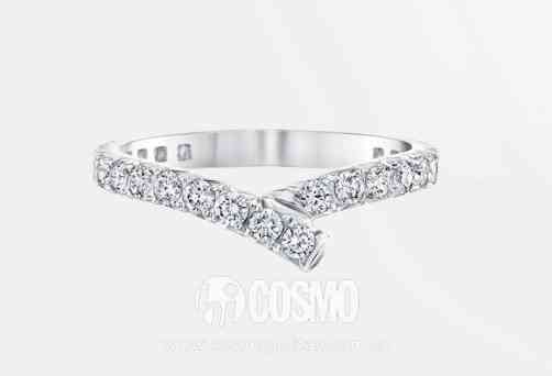 众多碎钻婚戒中,最有名就是Harry Winston的“Ribbon”系列了,这款戒指的设计形状好似缎带一样,弧线优美,非常修饰手型。整枚戒指由31颗圆形明亮式切工钻石制作而成,总重约0.62克拉,订购价格约5W元人民币。