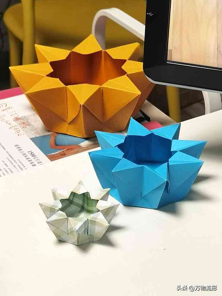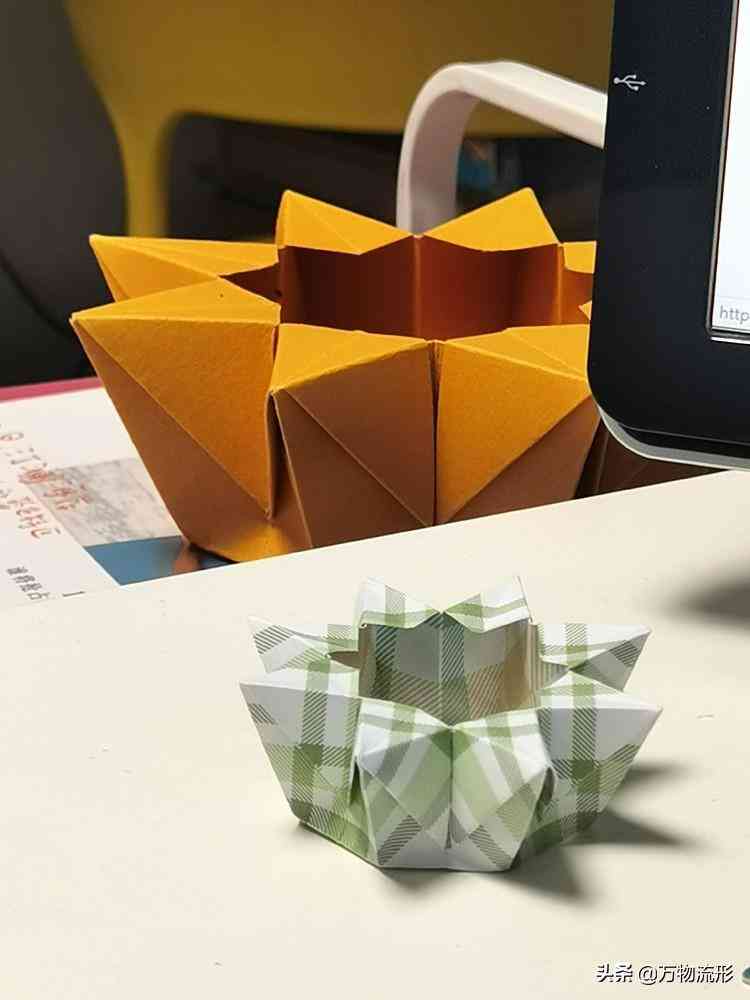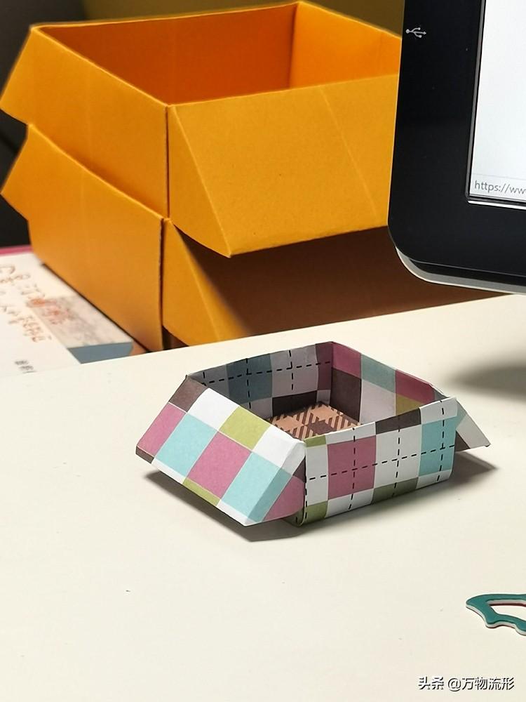 以上的盒子尺寸较大,作者选择的是4K尺寸稍硬的纸来折叠的,可用于日常收纳,部分款式尺寸跟家里的盘碗碟子差不多大小了。