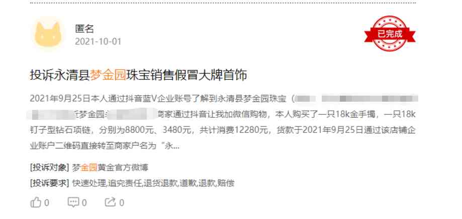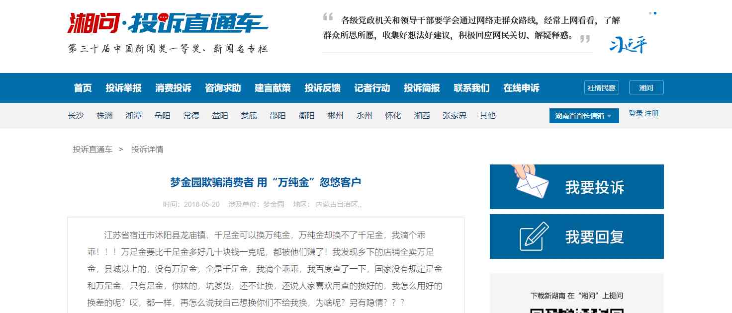 但红星资本局发现,此后依然有不少消费者被千足、万足金概念迷惑。在投诉平台,有消费者就梦金园“万纯系列”产品发出疑问,“千足金可以换万纯金,万纯金却换不了千足金。”显然,有消费者已将万纯系列与万足金、千足金划上了等号。