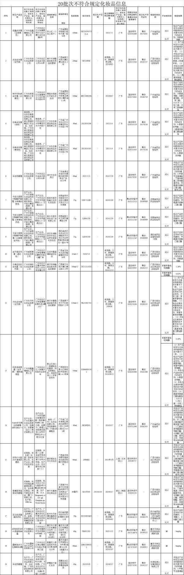 在2022年国家化妆品监督抽检工作中,经广西壮族自治区食品药品检验所等单位检验,标示为广州市浩鑫精细化工有限公司生产的浩鑫染发膏(亚麻褐色)等20批次化妆品不符合规定。