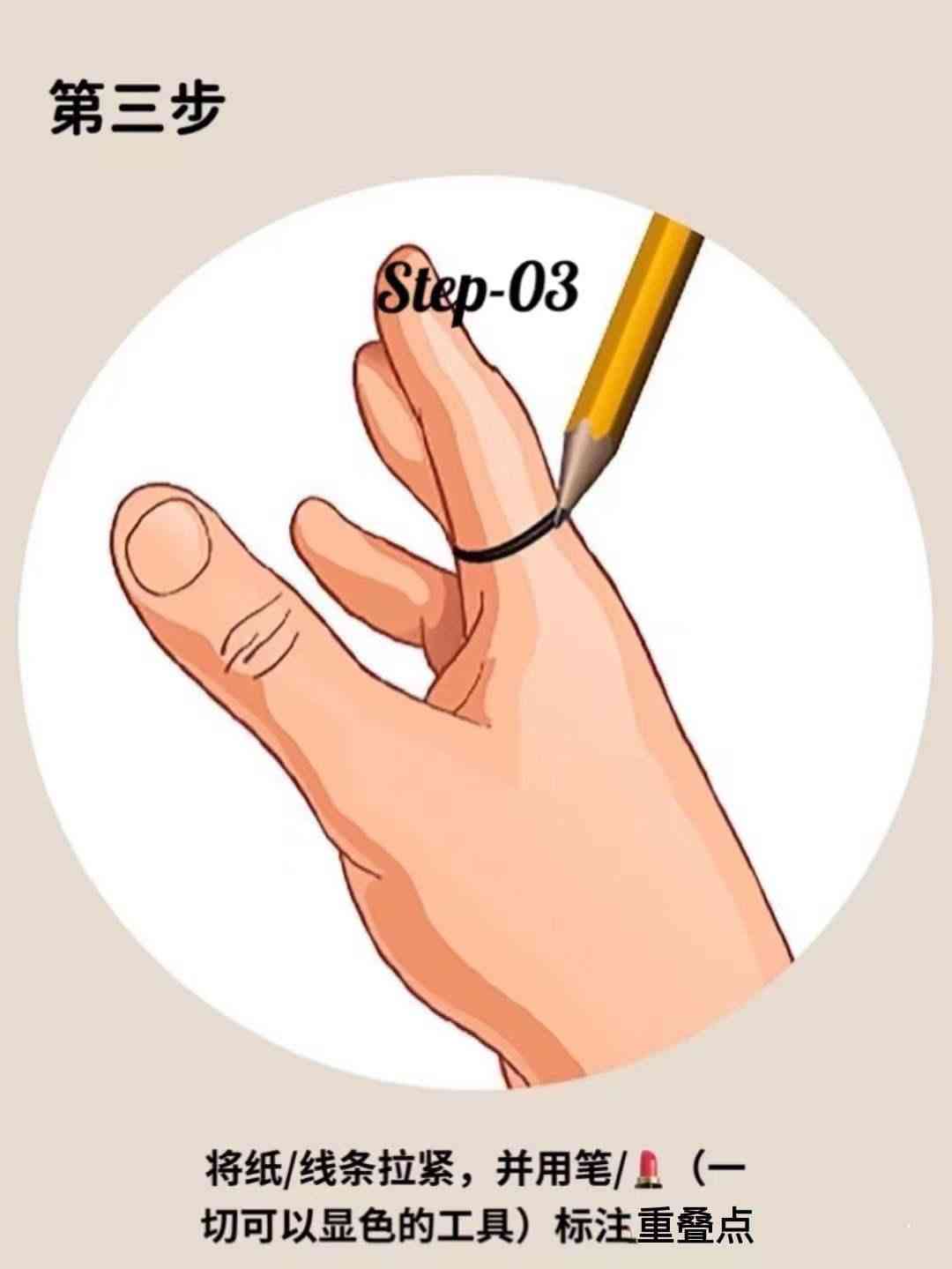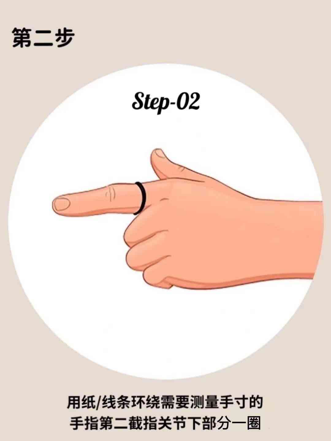 1.用纸或者是线条环绕需要测量翡翠戒指指圈的手指最粗的地方一圈。
