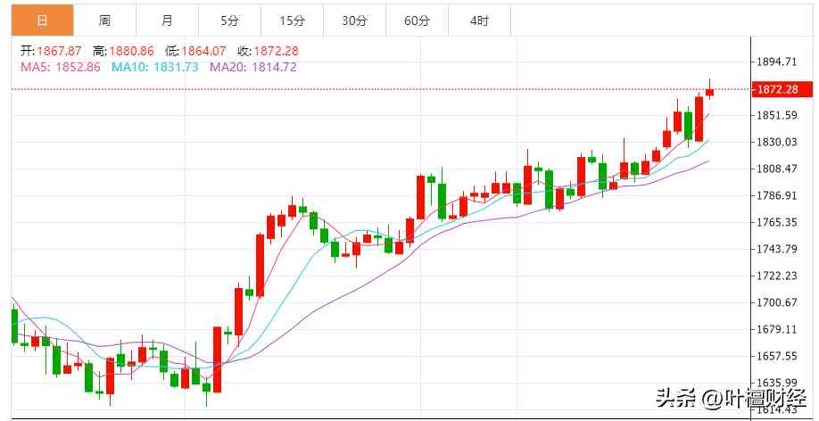 继1月6日大涨创出阶段新高之后,1月9日国际金价扩大涨势,一度来到1880.86美元/盎司,创出近八个月的新高。