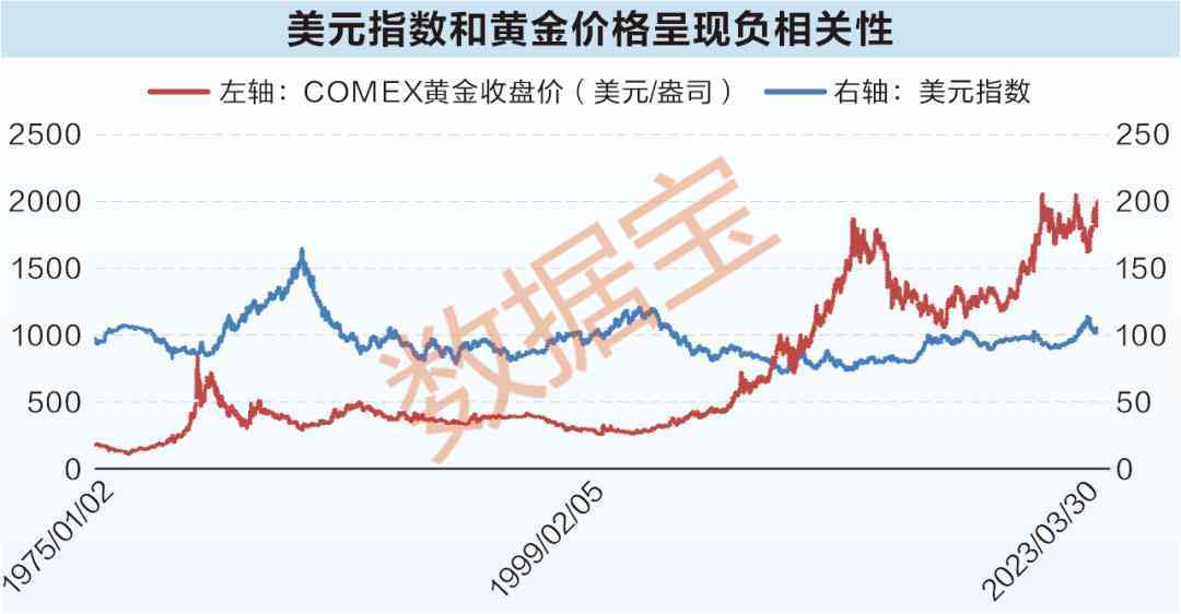 1971年~1980年间,布雷顿森林体系解体后,美元不再和黄金挂钩,美元指数经历了一段下行周期,而黄金迎来轮大牛市。2000年互联网泡沫破裂,美联储在2000年末开启长达2年多的降息周期,黄金进入第二轮大牛市。