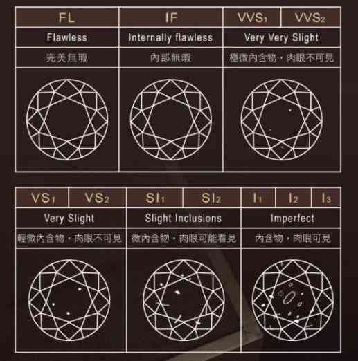 所以净度也是大家挑选钻石时要认真考虑的一个关键因素,净度也有不同等级的划分,净度等级越高,钻石品质越高,价格也就越昂贵。钻石净度的划分就是较为流行的。美国宝石学院的GIC标准。它也是首先提出钻石4C标准的。一颗钻石的净度可分为六个类别和11个等级。