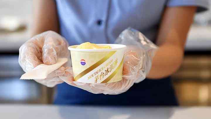 这不是普通的冰淇淋,而是茅台和蒙牛合作推出的冰淇淋。两大品牌加持看上去就不像小打小闹。这个冰淇淋有原味茅台和香草茅台等 14 种口味,目前能买到它的茅台国际大酒店。酒店透露,这些冰淇淋售价在 39.9-100+ 元区间——卖得比哈根达斯还贵。