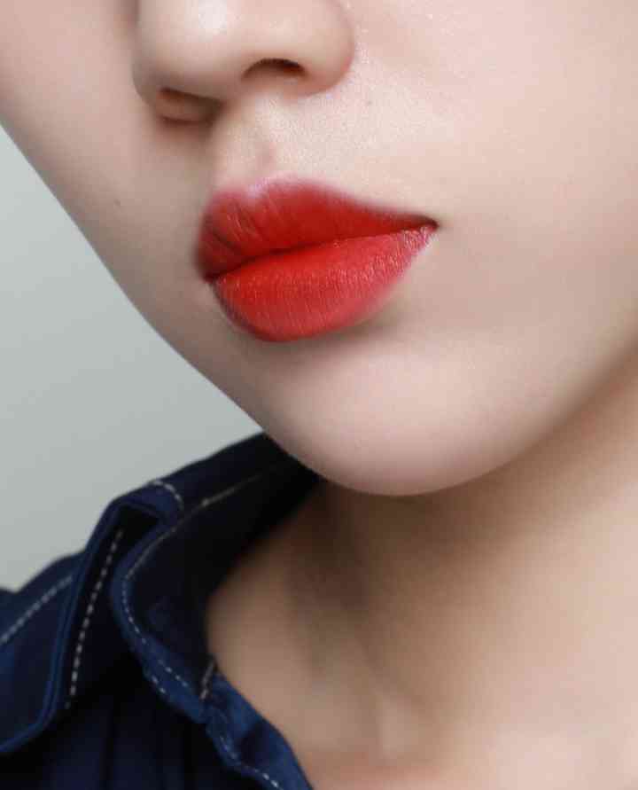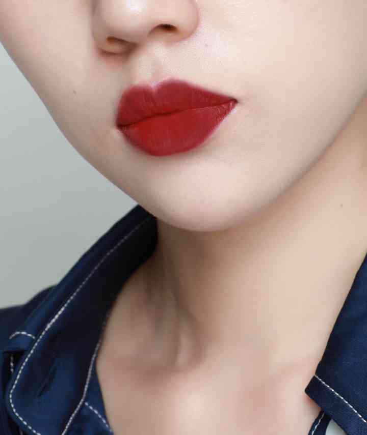 正红色中带一点点的棕调,像宝石一样,柔亮的半哑光妆感,上嘴美哭了!黄皮白皮涂都好看!