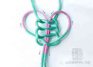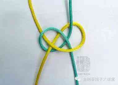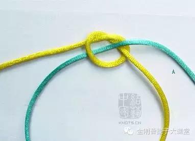 线从两边由上往下穿过单死结的中心