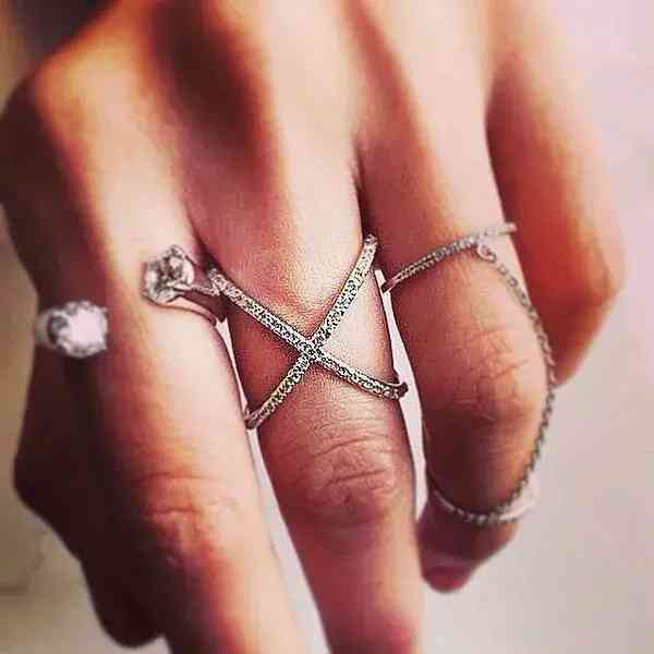 如果你真的难以选择,想要把戒指通通带上的话,可以选择箭头设计戒指,或者一些星星、月亮的设计元素,不过切记箭头指向的戒指要确保方向性一致,颜色也尽量相同才不会过于混乱。