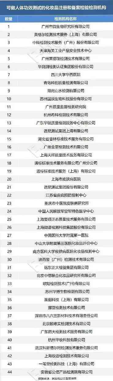 另《未来迹Future Beauty》从国家药监局官网发现,目前能做人体功效测试的检验机构更加“凤毛麟角”,仅有40余家。