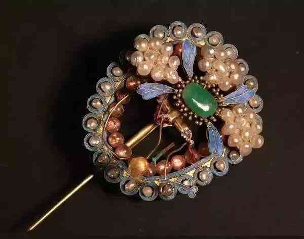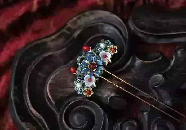 【簪】簪[zān]是笄的发展,同样起固定发髻之用,在前端加以纹饰,雕刻成植物(花草)、动物(凤凰孔雀)、吉祥器物(如意)等形,并可用金、玉、象牙、玳瑁等贵重材料制作,工艺也愈发丰富,有錾花、镂花及盘花等。